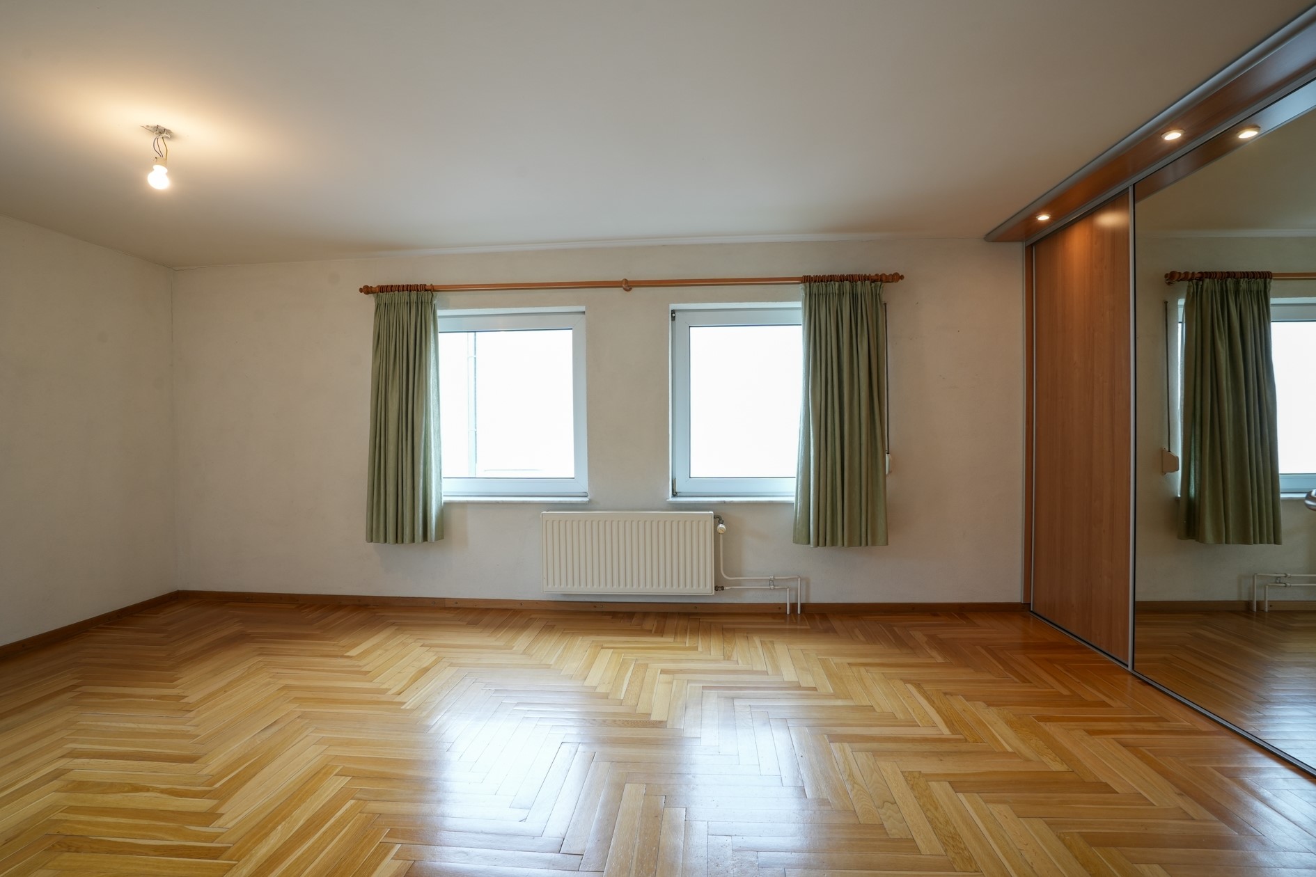 Vanaf de overloop zijn twee (mogelijk drie) slaapkamers en de badkamer te bereiken. Aan de rechterzijde is de hoofdslaapkamer van ruim 23 m² en de tweede slaapkamer is ca. 9.4 m² groot. Deze kamer heeft een deur naar het platte dak boven de garage. In beide slaapkamers ligt een gelijmde eiken parketvloer, met een visgraatmotief in de hoofdslaapkamer.