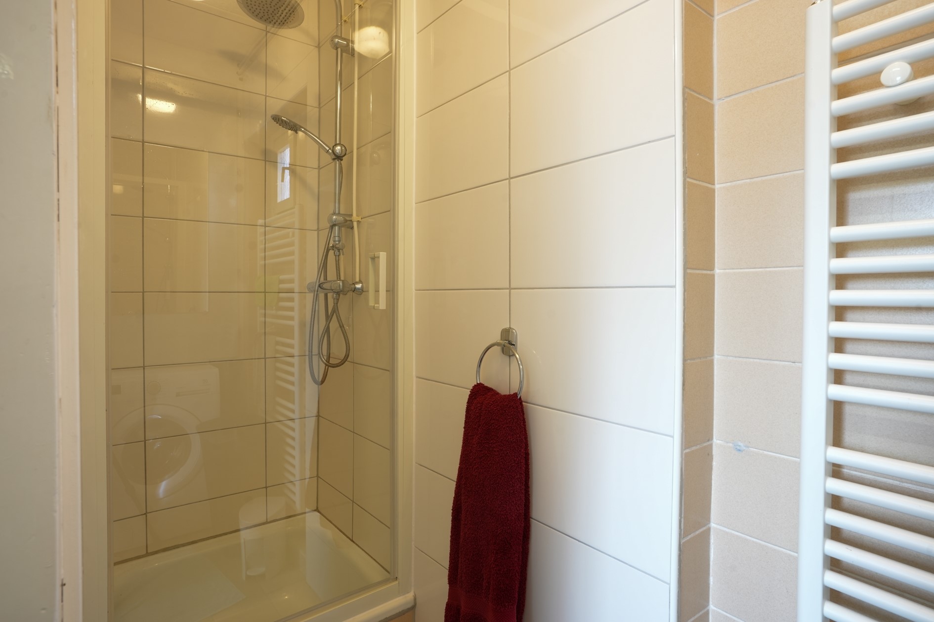Verrassend is de douche-/wasruimte op de begane grond met een douche, handdoekenradiator en boven de wasmachine hangt de HR-ketel. De laatste ruimte op de begane grond is een hobbyruimte/werkkamer (circa 6.5 m2) met een schuifpui naar het overdekte terras. Met het samenvoegen van de keuken, badkamer en hobbyruimte ontstaat er een grote, tuingerichte woonkeuken.
