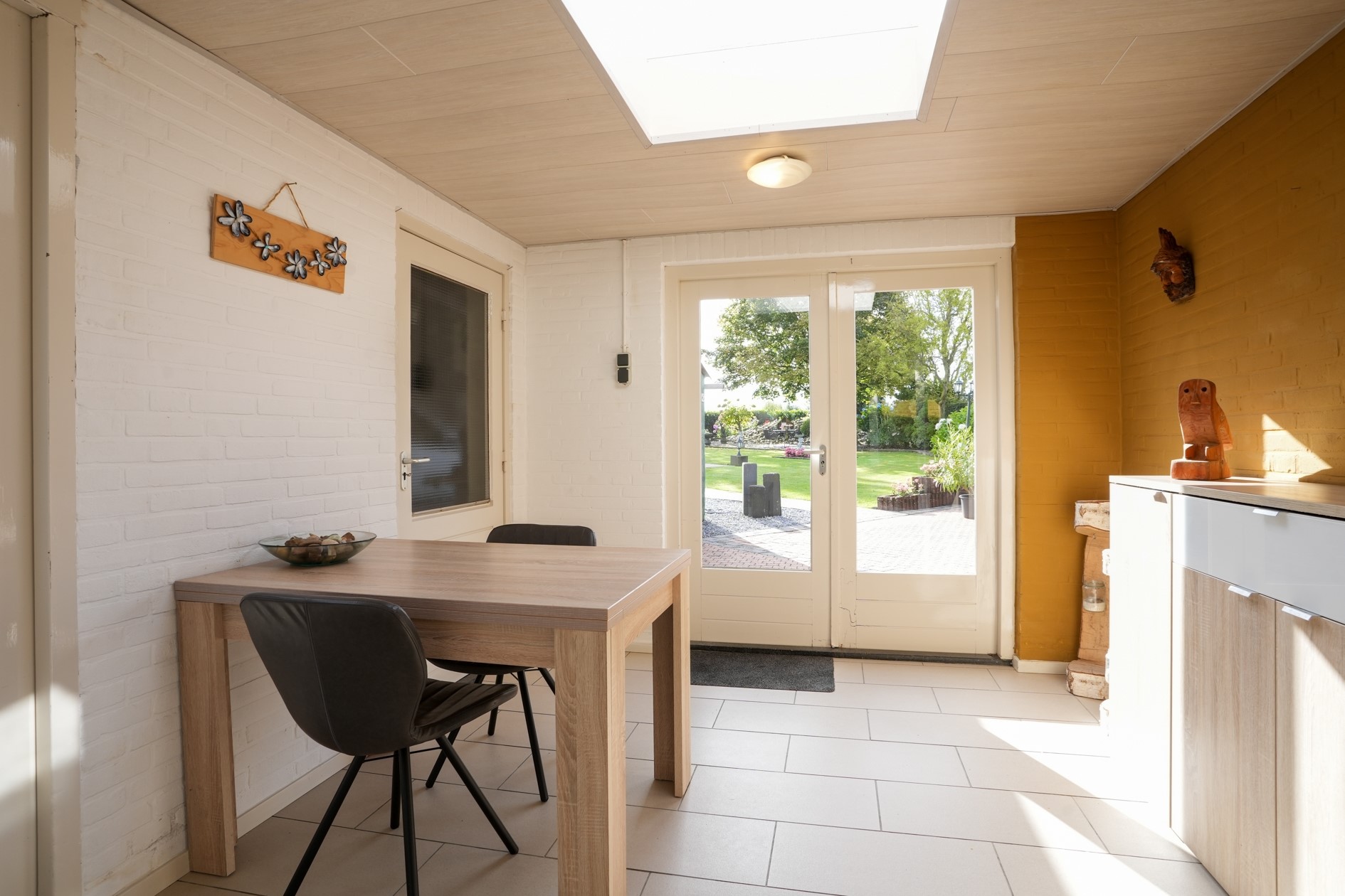 Verrassend is de tuinkamer (circa 9.4 m2) die de keuken met de achtertuin, oprit en de garage verbindt. Deze ruimte is onder andere geschikt als eetkamer, werkkamer, hobbyruimte, gameroom of speelkamer van de kinderen. De aansluitende garage (circa 27.4 m2) met spouwmuren, elektra en water heeft een elektrisch bedienbare sectionaalpoort naar de oprit.