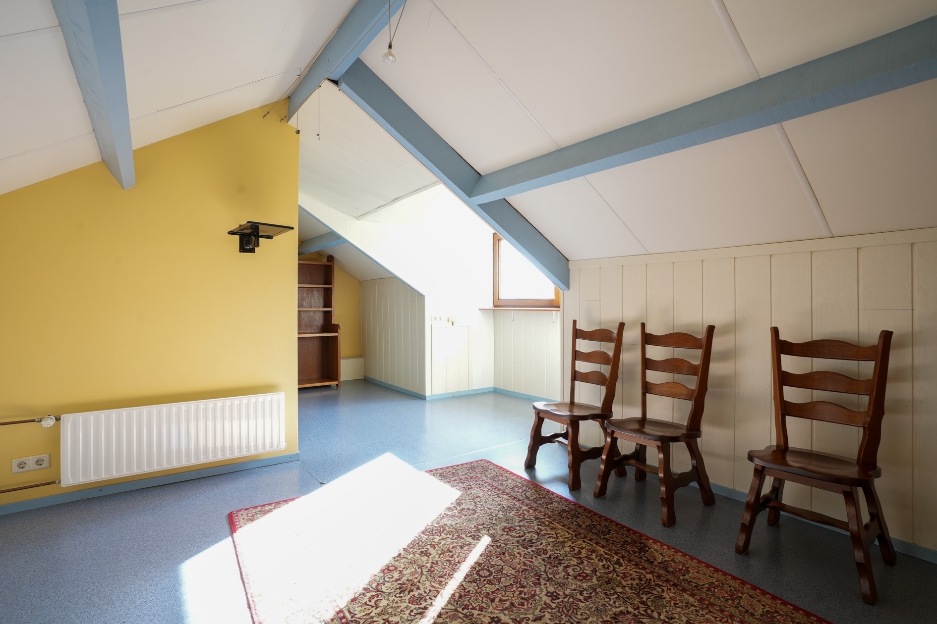 Een ruimtebesparende wenteltrap geeft toegang tot de tweede verdieping, waar een grote ruimte van circa 28 m2 klaar is voor een nieuwe invulling. Denk hierbij aan een ruime slaapkamer, een werkkamer, hobbyruimte of een combinatie van meerdere functies. Er zijn meerdere bergingen in de schuinte van het dak, aan de achterzijde is een dakkapel geplaatst en aan de voorzijde is een aparte wasruimte.