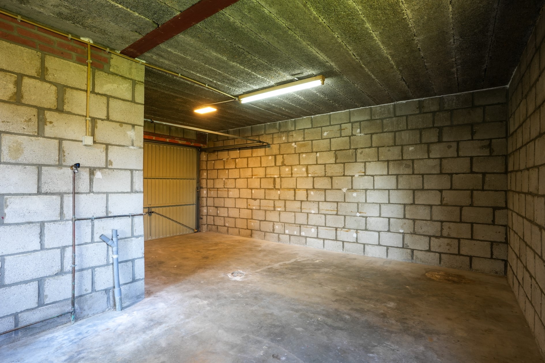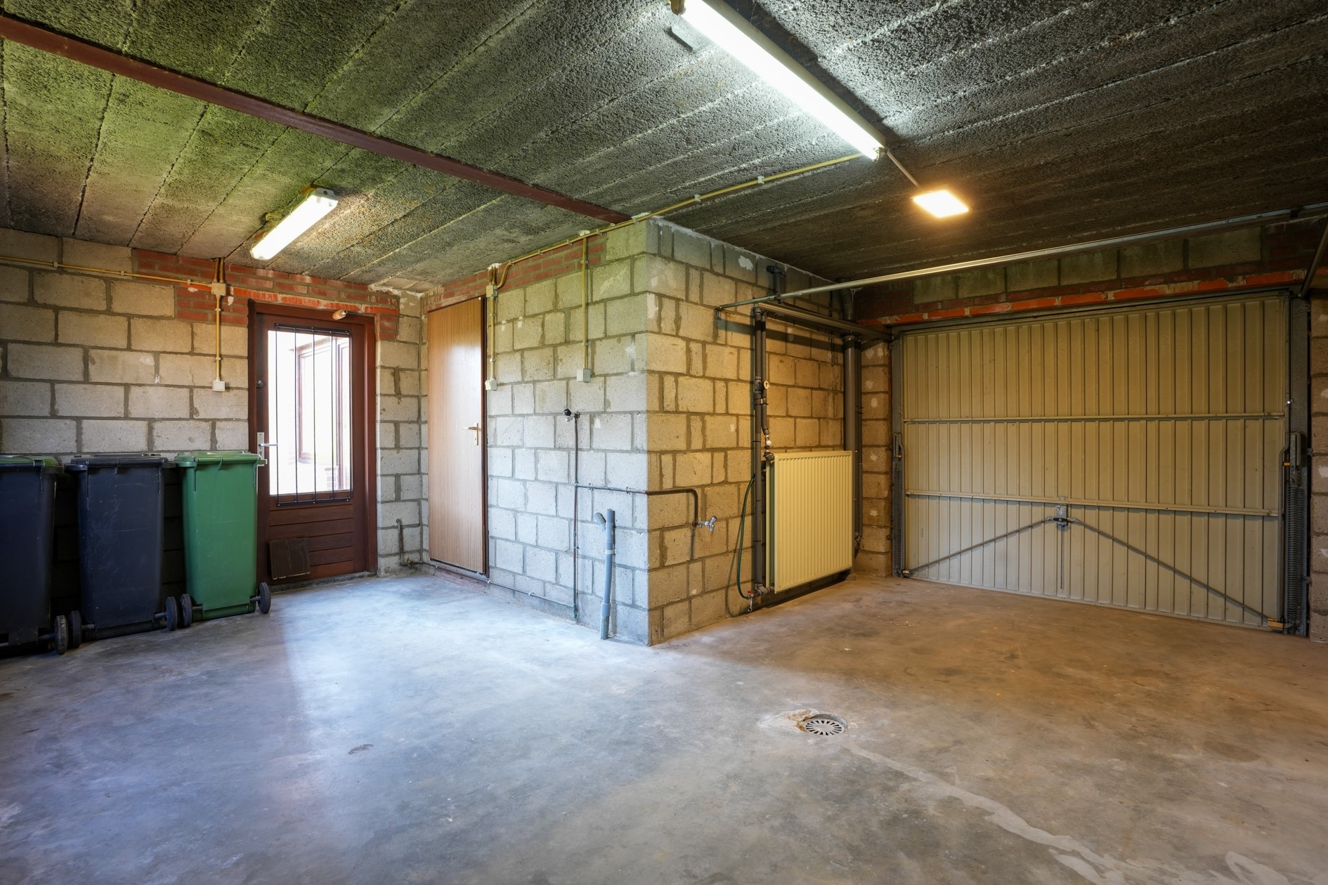 De inpandig te bereiken garage (circa 22.9 m2) is uitgevoerd met spouwmuren, een kantelpoort naar de oprit en een deur naar de tuin. Niet alleen elektra is aanwezig, maar ook water en afvoer. Het is mogelijk om de garage te splitsen, om bijvoorbeeld een bijkeuken of een thuiswerkplek te creëren.